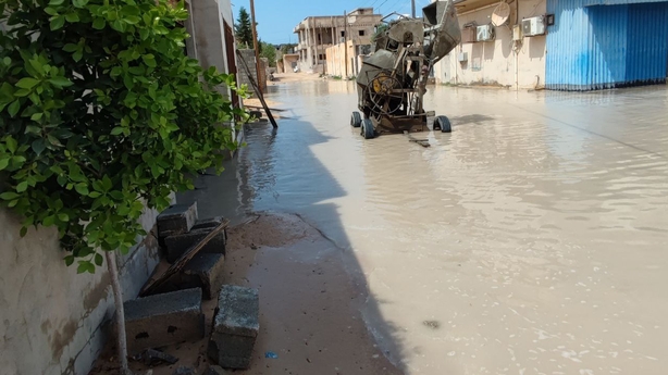 Cuireadh drochbhail ar an gceathrú cuid de chathair Derna nuair a theip ar dhambaí le linn stoirme.