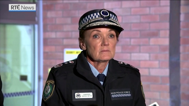 Deir Coimisinéir Phóilíní New South Wales, Karen Webb gur 'maraíodh ceathrar ban agus fear amháin ar an láthair'.