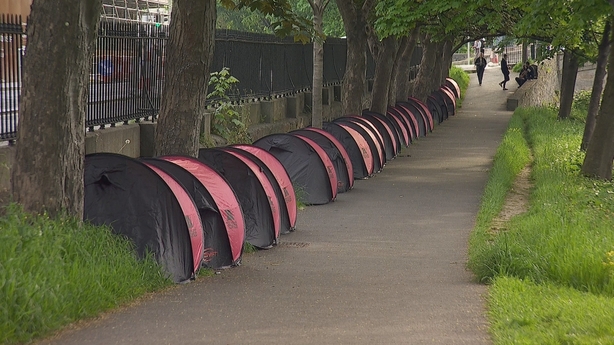 É sin tar éis do na húdaráis 100 puball a bhí curtha suas san áit cheana a ghlanadh as an mbealach ar maidin inné agus na fir a bhí ag cur fúthu iontu a aistriú go dtí ionaid chónaithe eile i mBaile Átha Cliath.
