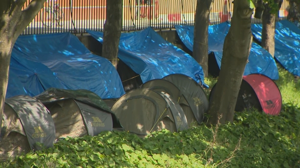 Inné, bhí os cionn 90 puball curtha suas ag iarrthóirí tearmainn idirnáisiúnta le taobh na Canála Móire idir Droichead Shráid Bhagóid agus Plás Wilton i lár Bhaile Átha Cliath.