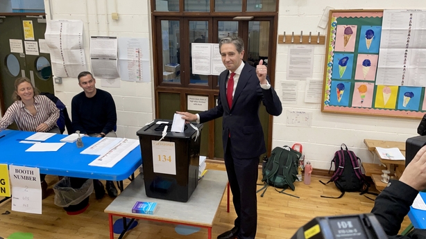 Chaith an Taoiseach, Simon Harris, vóta ag Scoil Náisiúnta Deilgne Mocheróg i gContae Chill Mhantáin.