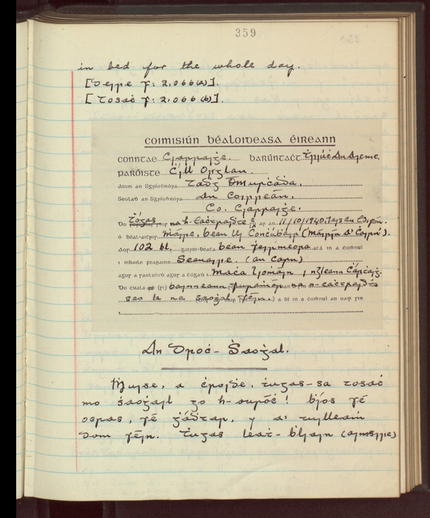 Tá ábhar a bailíodh ó scór faisnéiseoir san saothar, idir mhná agus fhearaibh.