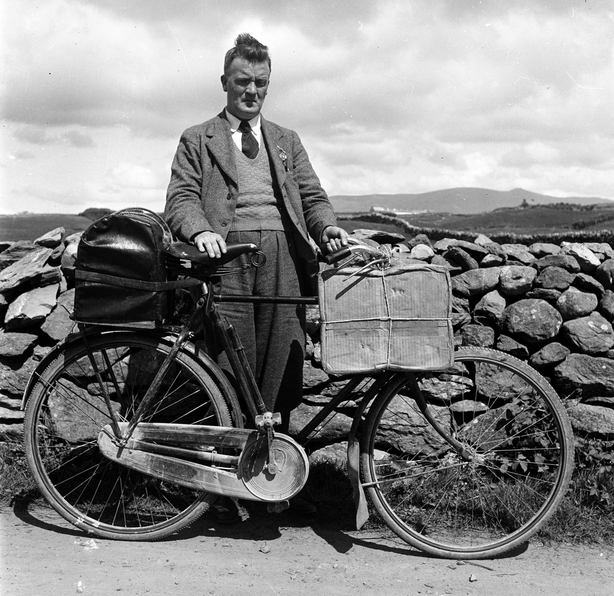 Ní raibh aige mar áis taistil ach a rothar agus an t-eideafón trom á iompar aige.