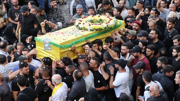 An lá roimhe sin, maraíodh dháréag – beirt pháistí ina measc – agus leonadh beagnach 3,000 duine eile nuair a phléasc na mílte glaoire póca le comhaltaí de Hezbollah i mBéiriut, i nGleann Bheiceá agus i ndeisceart na Liobáine.