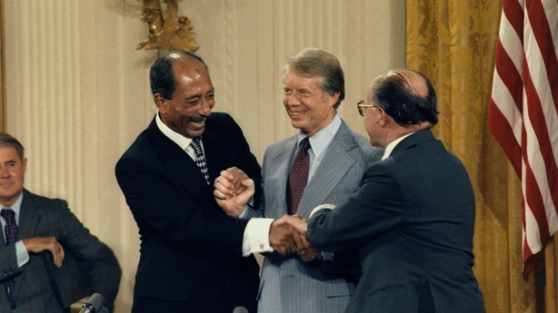 Bhí Jimmy Carter ina Uachtarán idir 1977-1981 agus bhain sé cáil amach i gcaitheamh na mblianta sin, agus ina ndiaidh go háirithe, as na hiarrachtaí a rinne sé síocháin a chur chun cinn i dtíortha ina raibh coimhlint fhadbhunaithe.
