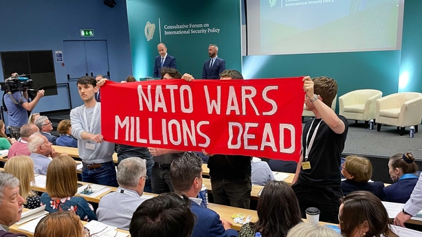 One of the first interventions came from the Cork Neutrality League, which sought to raise a point of order that "this forum is unfairly weighted towards supporters of increased militarisation".