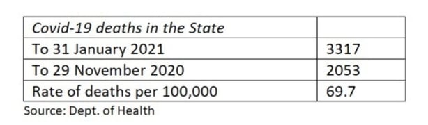 Up to 31 January, 3,317 people had died with Covid-19 in the State.