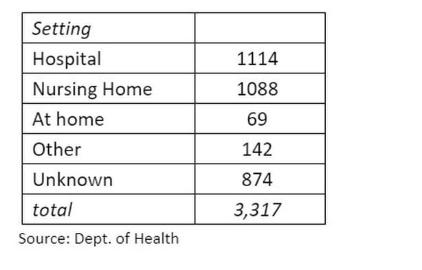 The settings of the 3,317 notified deaths nationwide are as follows:
