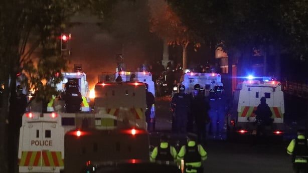 Some bins were set alight in the area and the Police Service of Northern Ireland said that fireworks and missiles were thrown at officers.