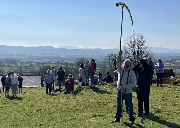 Members of Ancient Music Ireland – a group dedicated to the preservation of Stone and Bronze Age instruments - travelled from Galway with a replica of what’s known as the Ard Brin trumpet, dating from the Bronze Age, which was found in a bog near Knockiveagh in the 19th century.