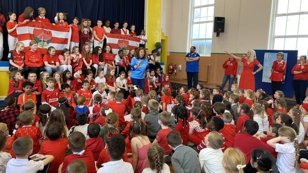 Written by teacher Sinéad McNally, CBS primary pupils dressed in their red and white county colours blasted their new county anthem in the school hall today.