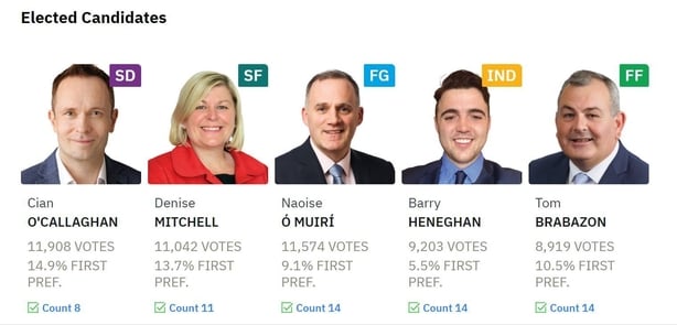 The fifth seat instead looked like it would be a battle between Fianna Fáil's Deirdre Heney and Fine Gael's Aoibhinn Tormey.