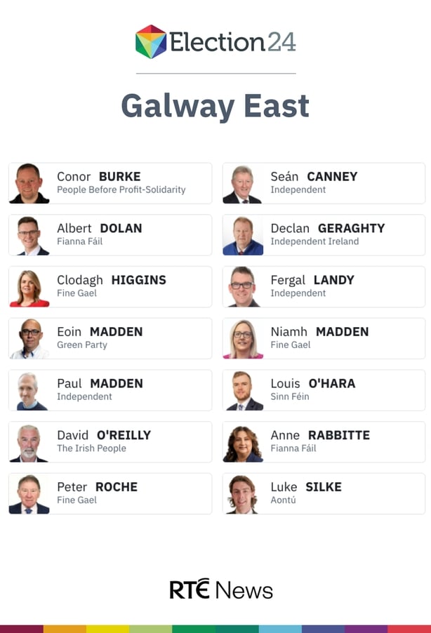 There are three new faces representing Galway East: Albert Dolan, the 26-year-old Fianna Fáil Cathaoirleach of Galway Co Council, Peter Roche of Fine Gael and Sinn Féin's Louis O'Hara.
