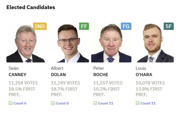 Mr Roche of Fine Gael managed to take a seat this time after Ciarán Cannon decided not to seek re-election.