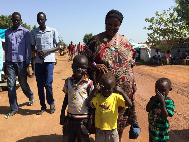 We met the mother of five at a water station in a camp for those who fled the violence of the civil war, in the UN compound in Juba, where she fled with her husband and her two other children on 16 December 2013, the day after the fighting began.