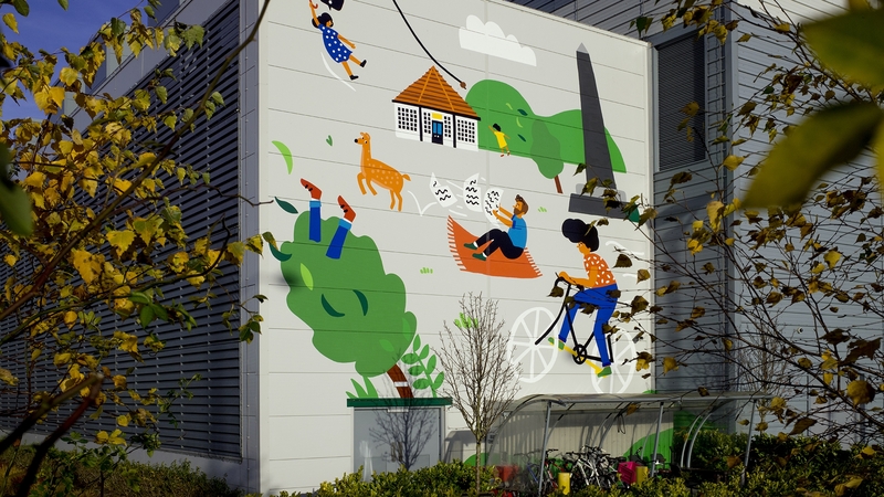 Google has taken steps to brighten up its data centre in west Dublin, by having large murals painted on it.