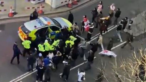 Footage posted to social media showed Piers Corbyn, the Covid-19 conspiracy theorist brother of former Labour leader Jeremy, addressing the crowd before the incident and later leading chants of "resist, defy, do not comply".
