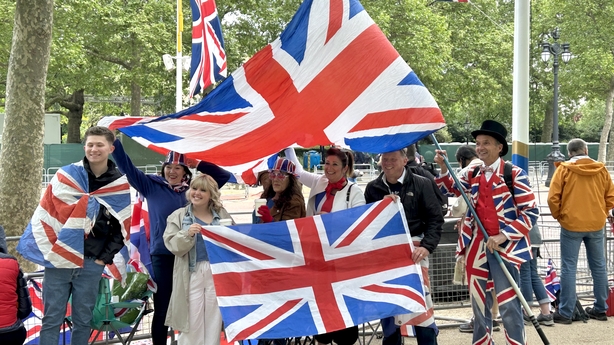 The royals, who waved to the onlookers gathered outside, were also due to host about 50 veterans and others who lived through the war for a tea party inside the palace.