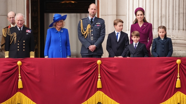 Today's parade concluded with a flypast by historic military aircraft and the Royal Air Force's Red Arrows display team, watched by the royals from the balcony of Buckingham Palace, as crowds flocked below to take in the spectacle.