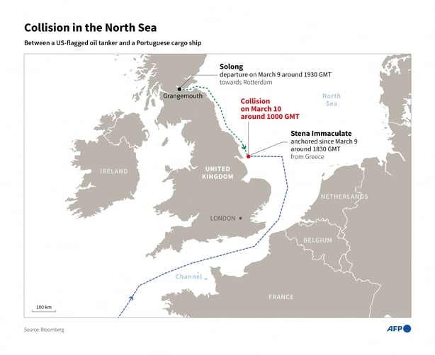 Previously, the court heard the Solong, which was 130 metres long and weighed 7,852 gross tonnes, had departed from Grangemouth in Scotland at 9.05pm on March 9 bound for the port of Rotterdam in Holland.