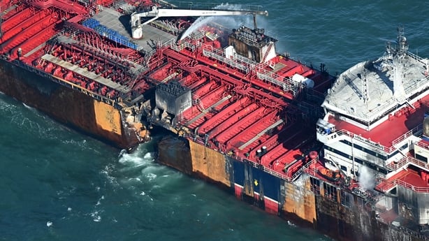 The shocked crew about the US tanker reacted instantly, saying: "Holy shit… what just hit us… a container ship… this is no drill, this is no drill, fire fire fire, we have had a collision."