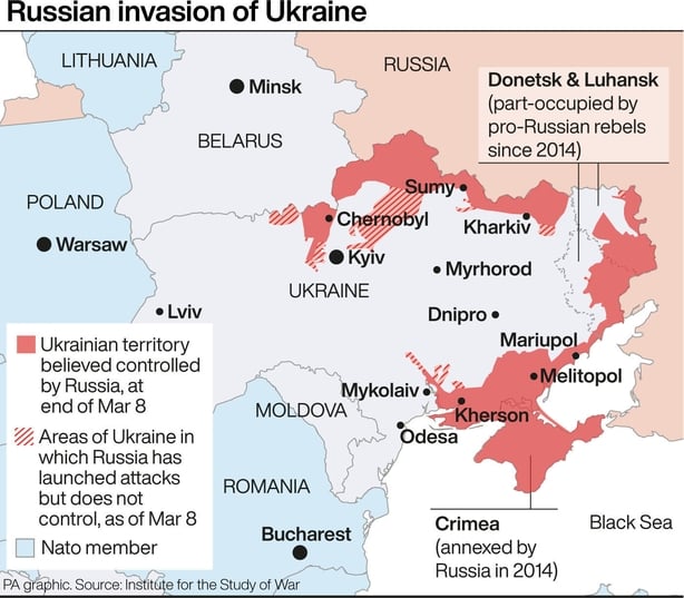 Russia has taken substantial territory in the south but has yet to capture any major cities in northern or eastern Ukraine, with an assault force stalled on a highway north of Kyiv.
