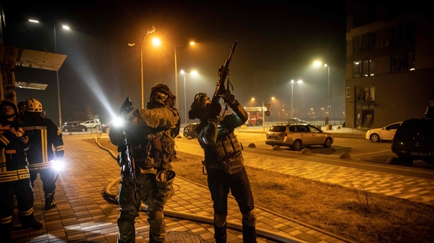 Firefighters were putting out small blazes around the smouldering carcass of the building, looking for possible survivors. Ukraine's Prosecutor General said at least eight people had been killed in the shelling.