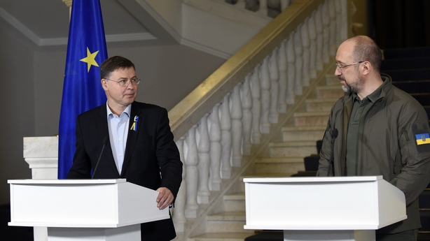 He was speaking at a joint news conference with a vice-president of the European Commission, Valdis Dombrovskis, who was visiting Kyiv to discuss emergency EU financial aid.