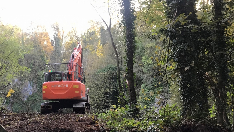 "A digger will prepare the ground to enable draining of a flooded quarry. This step is being taken so that the floor of the quarry can be effectively searched."