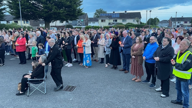 Those in attendance outside St Oliver Plunkett Church in Strathfoyle held candles in memory of Reuven Simon and Joseph Sebastian.