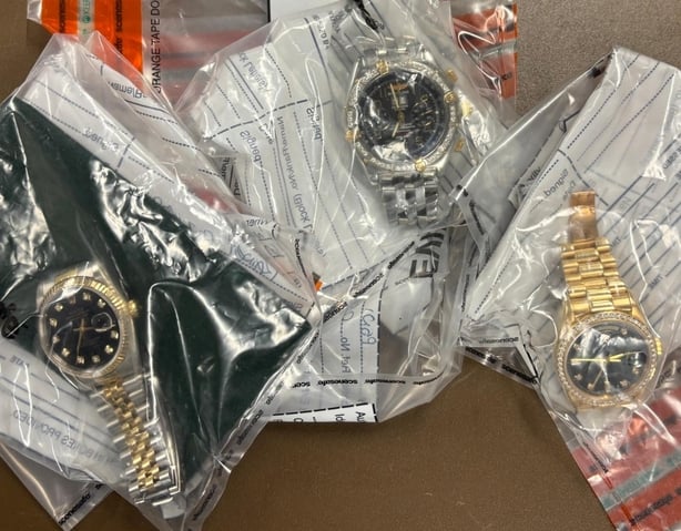 The vehicles include a Range Rover, a BMW and an Audi RS6. Two Rolex watches and a Breitling watch were also found.