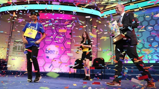Dev, who was crowned champion in a hail of confetti before being joined on stage by his parents and other relatives, takes home $50,000 (€46,445) from EW Scripps Co, the bee's sponsor, plus further monetary prizes and reference works from Encyclopedia Britannica and Merriam-Webster.