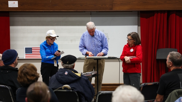 Then volunteers (who were themselves voters) carried blue plastic buckets swiftly around the hall. In a couple minutes the ballots were cast. In three times that amount of time they were counted - 50 for Trump, 48 for DeSantis, 15 for Haley and seven for Ramaswamy.