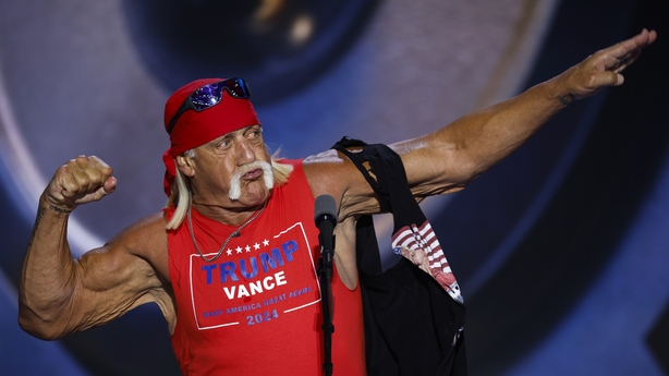 The convention's primetime program of speakers reflected the nominee's background as a reality television star: mixed martial arts executive Dana White, musician Kid Rock and pro wrestler Hulk Hogan, who fired up the crowd by tearing his top in half to reveal a sleeveless red Trump campaign shirt.