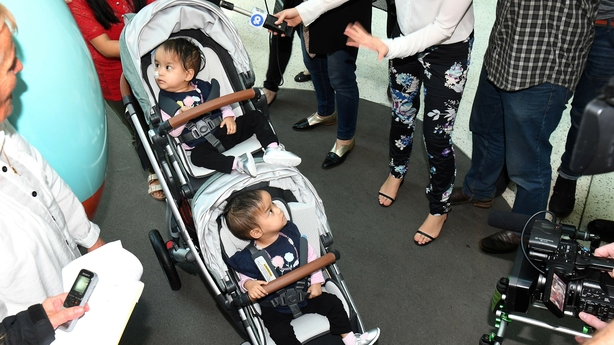 Relatives, well-wishers, doctors and a media pack thronged the country's international airport to welcome back the 19-month-old girls, who until their surgery in Australia had been joined at the stomach and shared a liver.