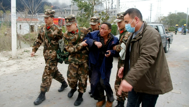 Workers covered in blood were seen running out of the factory, said official news agency Xinhua.