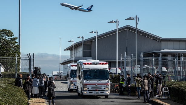 Medical professionals were on the plane to carry out checks and Japan's health ministry said around nine passengers have been hospitalised with symptoms like fever and coughing, although coronavirus has not been confirmed.