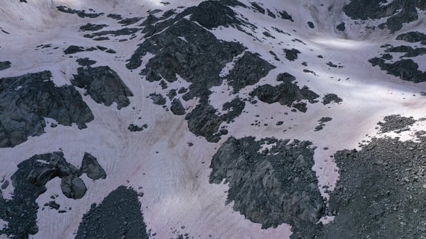 Scientists in Italy are investigating the mysterious appearance of pink glacial ice in the Alps, caused by algae that accelerate the effects of climate change.