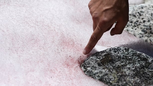 There is debate about where the algae come from, but Biagio Di Mauro of Italy's National Research Council said the pink snow observed on parts of the Presena glacier is likely caused by the same plant found in Greenland.