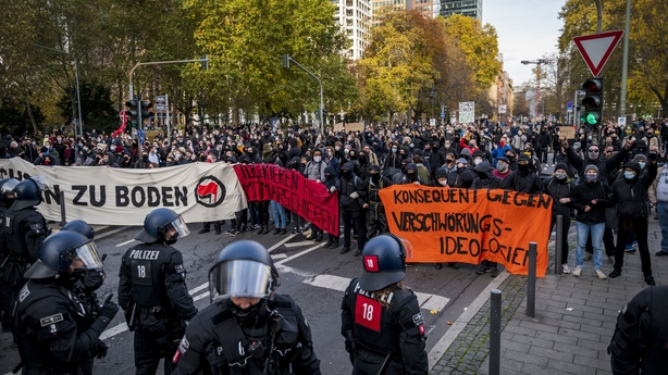 Demonstrations against the restrictions were held on Saturday across Germany, including one in Frankfurt where police used water cannon.