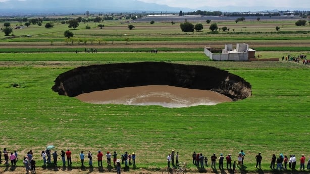 The hole, which is full of water, was about 30 metres (nearly 100 feet) wide by Sunday.