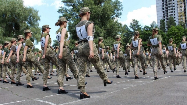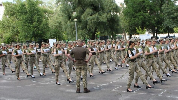 "Today, for the first time, training takes place in heeled shoes," cadet Ivanna Medvid was quoted as saying by the defence ministry's information site Armia Inform.