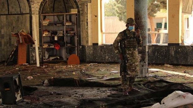 Video footage showed bodies surrounded by debris inside the mosque, which is used by the minority Shia Muslim community.