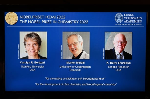 Americans Carolyn Bertozzi and Barry Sharpless, together with Denmark's Morten Meldal, were honoured "for the development of click chemistry and bioorthogonal chemistry", the jury said.