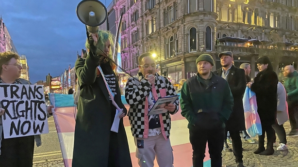 Protesters carried placards reading "Rest in Power" and "Trans Rights Now".
