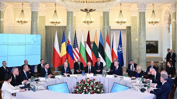 Earlier in the day Mr Biden met staff from the US Embassy in Warsaw before gathering leaders of the Bucharest Nine - states on NATO's eastern flank such as Poland, Bulgaria and Lithuania that joined the Western military bloc after being dominated by Moscow while under Communist rule during the Cold War.