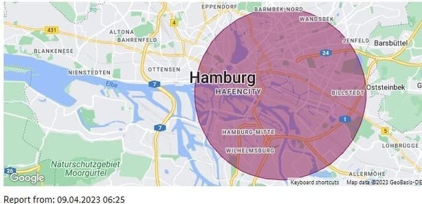 Authorities said the fire was in Rothenburgsort, just a few kilometres southeast of central Hamburg, and that the smoke cloud was moving in the direction of the city centre.