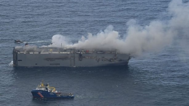 The cargo aboard the vessel includes electric vehicles and the ship's owners told Dutch media that one of them is thought to have sparked the blaze.