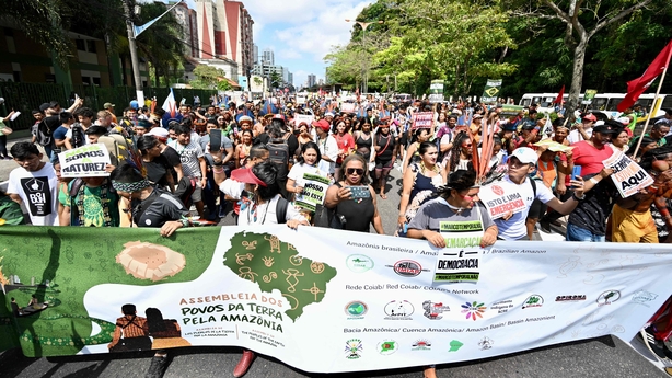 Seeking to pressure the gathered heads of state, hundreds of environmentalists, activists and Indigenous demonstrators marched to the conference venue in Belem, urging bold action.