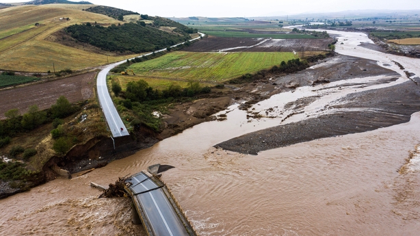 A bridge over the River Enipeas near the town of Farsala was swept away by the floodwaters.